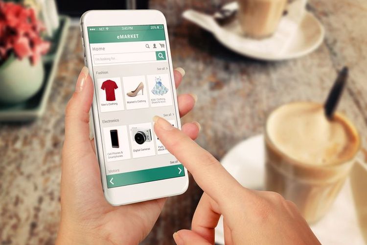 Pengguna smartphone berbelanja aplikasi di toko digital
